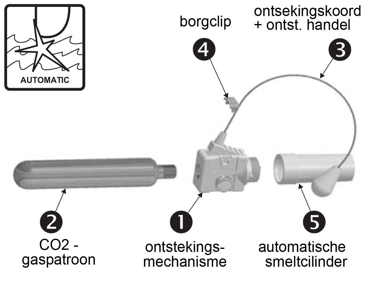 De gele clips spatten weg/los waardoor rode kleuren zichtbaar worden, om aan te geven dat het geheel geactiveerd is. Op de smeltcilinder staat de datum van vervanging. Die was bij mij al vele jaren overschreden.