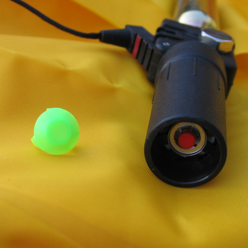 Ik heb een nieuwe CO2 patroon en smeltcilinder gekocht (plastimo). Er zat echter geen montagehandleiding bij. Die zou ik wel even van het web plukken, nou dat valt dus nogal tegen. Na veel zoeken vindt ik achterop een label in het vest de naam UML (United Moulders Ltd). Dan pas wordt je iets wijzer.